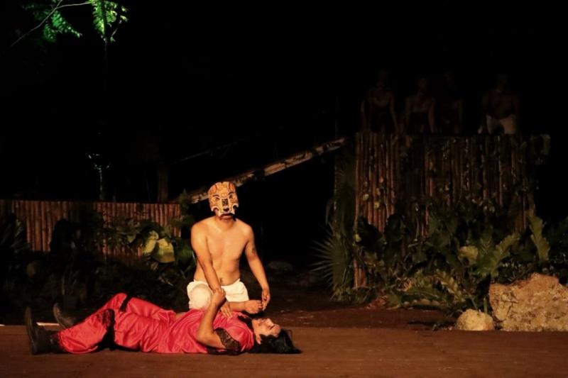 Las condiciones del espacio escénico, en medio de los árboles y el monte yucateco, favorecieron una narración en la que destacaron las voces mayas para contar la historia de Juan, el jaguar que vivió como hombre y luchó contra su propia naturaleza, la intolerancia y la incomprensión ante lo diferente.